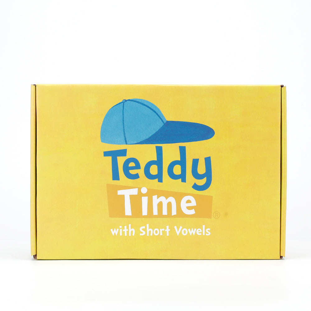 The Teddy Time with Short Vowels Activity Box is designed to support children's early literacy skills through guided learning and play. The box contains books, flash cards, and play-based activities centered on the beloved character, Teddy, from the Teddy in Trouble book series to teach children their short vowel words, also known as CVC words (i.e., consonant-vowel-consonant words). Children may be ready to learn CVC words when they express interest in learning to read and demonstrate an understanding of letters and sounds.